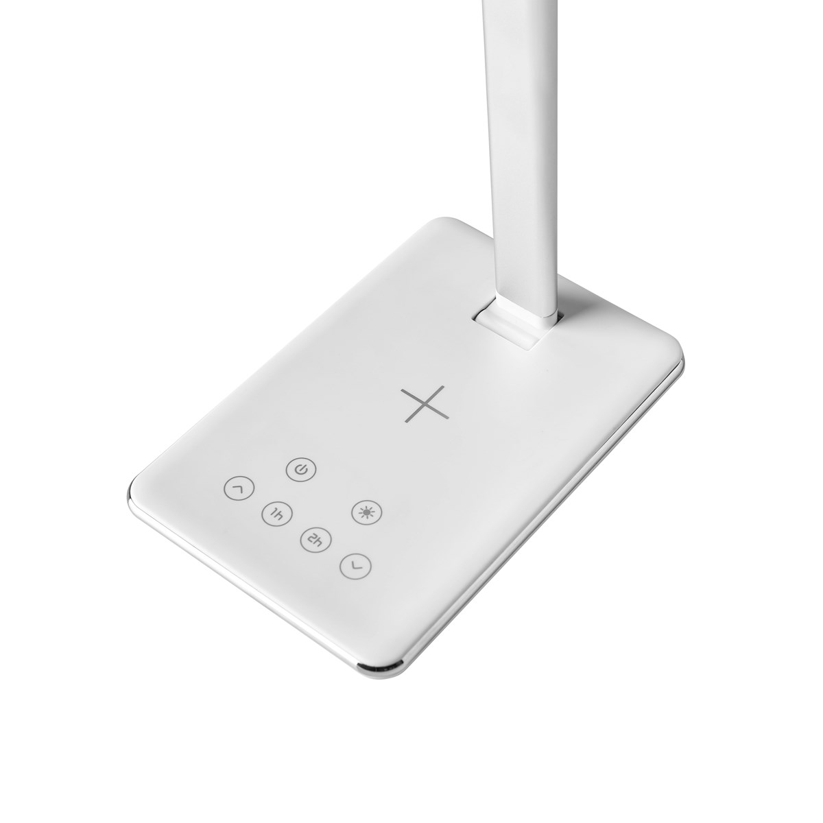 Stilren, nätt skrivbordslampa med smarta tekniska funktioner. Inbyggd Qi-laddare i foten och USB-uttag för laddning. Lampan blir liten och platt i hopfällt skick för att lägg kunna förflyttas och för enkel förvaring. Detta för att underlätta vid t.ex. aktivitetsbaserat kontor med "clean desk philosopy" och möjliggör individuell belysning för ökat välbefinnande och ökad koncentration. Färgtemperatur och ljusstyrka kan justeras efter ditt behov. 7 W LED. Timerfunktion. Mått: armländ 480 mm, bordsfot 180 x 120 mm, lamphuvud 250 x 50 mm.