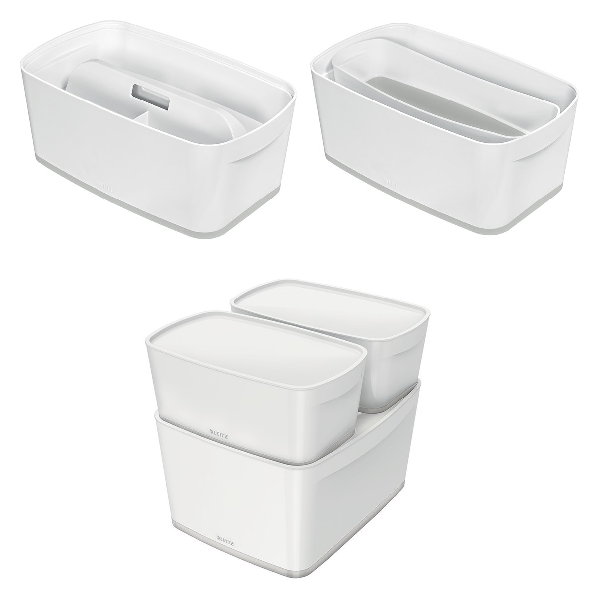 Snygg låda i två färger för snabb och enkel organisering och smart förvaring. 5 liter. Diskret snap-in-funktion gör den enkel att öppna och håller locket på plats. Tillverkad av robust, reptåligt och vattentätt plastmaterial för en förstklassig finish. Livsmedelssäker. Fri från BPA. Sparar utrymme: Leitz MyBox Large kan staplas med 2 x MyBox Small och får då plats på en standardhylla. När de inte använder kan lådorna staplas inuti varandra för att spara utrymme. Lätta att rengöra, med mjuka rundade hörn.