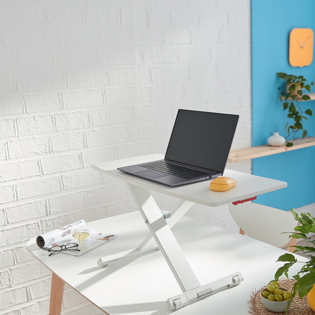 Ergonomiskt designat skrivbordsställ som håller dig aktiv hela dagen Växla mellan sittande och stående för att främja muskelrörelser och för att må bättre Pneumatisk assisterad höjdjustering för att enkelt och enkelt växla mellan sittande och stående position Rör sig rakt upp och ner inom sitt eget fotavtryck för att spara utrymme Kompakt design med 700 x 350 mm fotavtryck, tar minimalt med utrymme på ditt skrivbord eller var du än arbetar