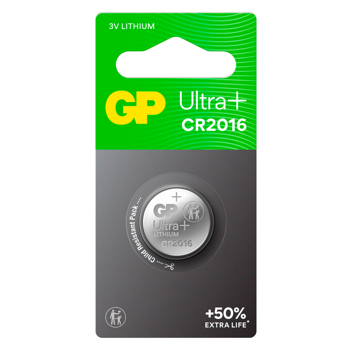 GP Ultra Plus Litium-knappcellsbatterier CR2016 levererar pålitlig kraft och har upp till 50 % längre livslängd.* Speciellt anpassade för bilnycklar säkerställer dessa batterier pålitlig funktion och lång räckvidd vid upplåsning. Avancerad försegling minimerar självurladdning och förhindrar läckage. Byggda för hållbarhet; fungerar i temperaturer från -20 °C till +60 °C. Den barnsäkra förpackningen ger extra trygghet, speciellt i hemmet.