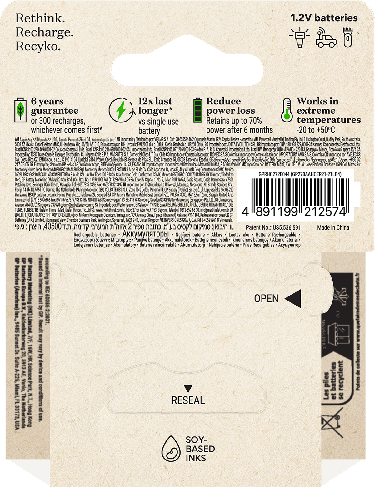 Recyko AA 2600mAh batteri är ett kraftfullt laddningsbart NiMH batteri som är utvecklat för ditt vardagliga användande. Batterierna är laddade vid köp och redo att användas direkt ur förpackningen. Till skillnad från engångsbatterier så kan Recyko användas vid låga temperaturer, ända ned till - 20°C. Batteriet är dessutom skapat med mer än 10% återvunna material och över 90% av batteriet, inklusive förpackning är återvinningsbart.