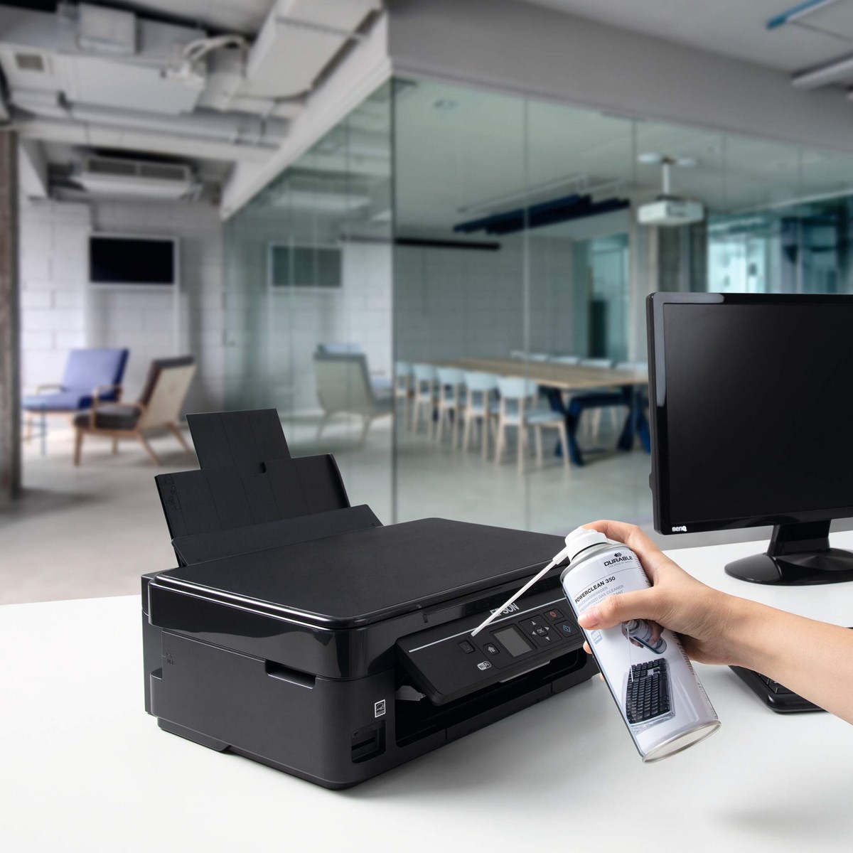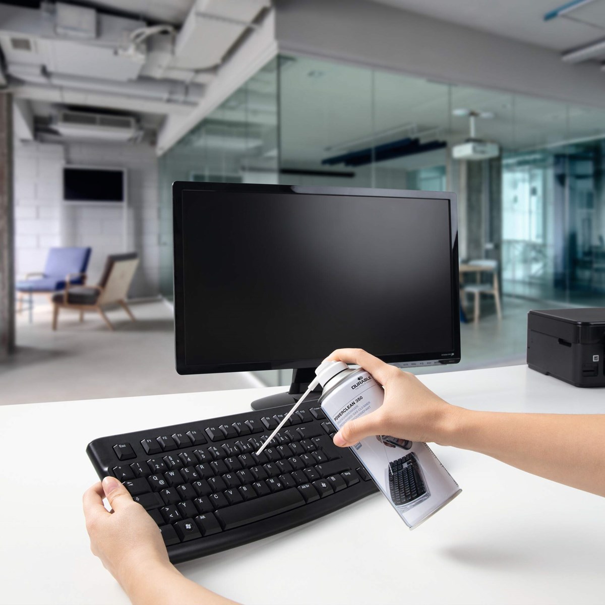 För rengöring av svåråtkomliga eller känsliga ytor t.ex. skrivare, tangentbord samt foto- och filmkameror. Med förlängningsrör för precision vid sprayning. Flamsäker.