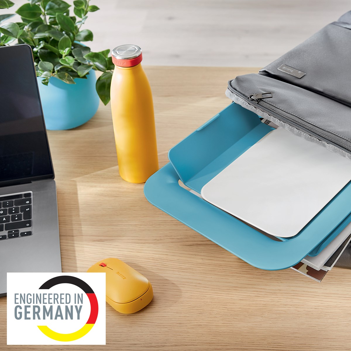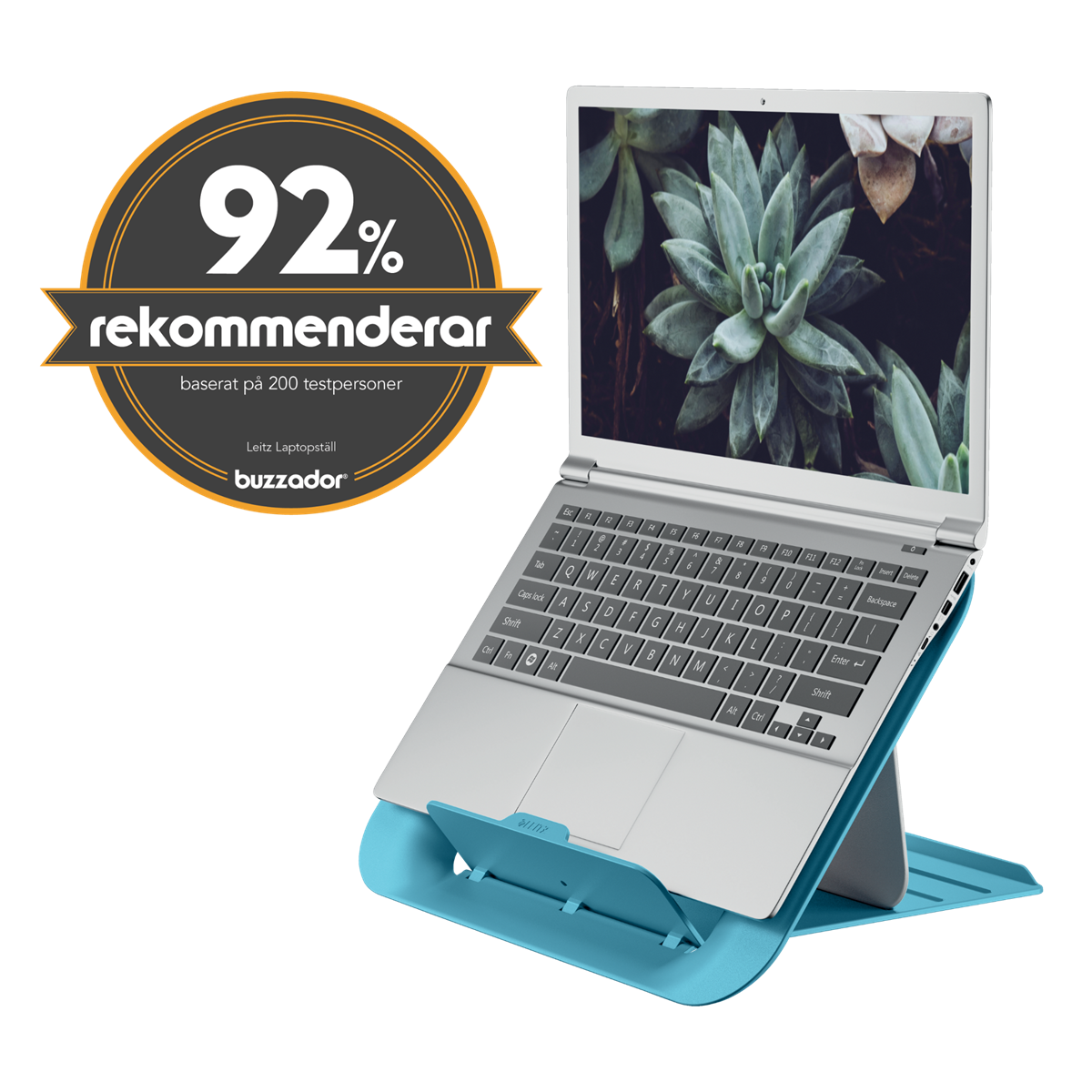Leitz Ergo Cosy Laptopställ höjer skärmen på din bärbara dator för att öka din ögonkomfort och hjälpa till att förbättra din hållning. Tillverkad av 80% post-consumer återvunnen plast, produkten kan demonteras genom att metalldelar separeras från plast för 100% återvinning - hög kvalitet och lång livslängd för att hjälpa till att bevara jordens resurser. Att använda ett laptopställ främjar också luftflödet, vilket håller din laptops batteri och andra komponenter svala för att upprätthålla höga prestandanivåer. Med sin minimalistiska och färgglada design förbättrar det här eleganta laptopstativet både hälsa och välbefinnande genom att enkelt skapa den perfekta aktiva arbetsmiljön. Kombinera med andra Leitz Ergo-produkter för att skapa en inbjudande och flexibel arbetsplats som håller dig i rörelse hela dagen. Lämplig för bärbara datorer från 13" till 17", MacBooks som öppnas till maximalt 135 grader kan användas i höjdinställningarna 162 mm och 176 mm