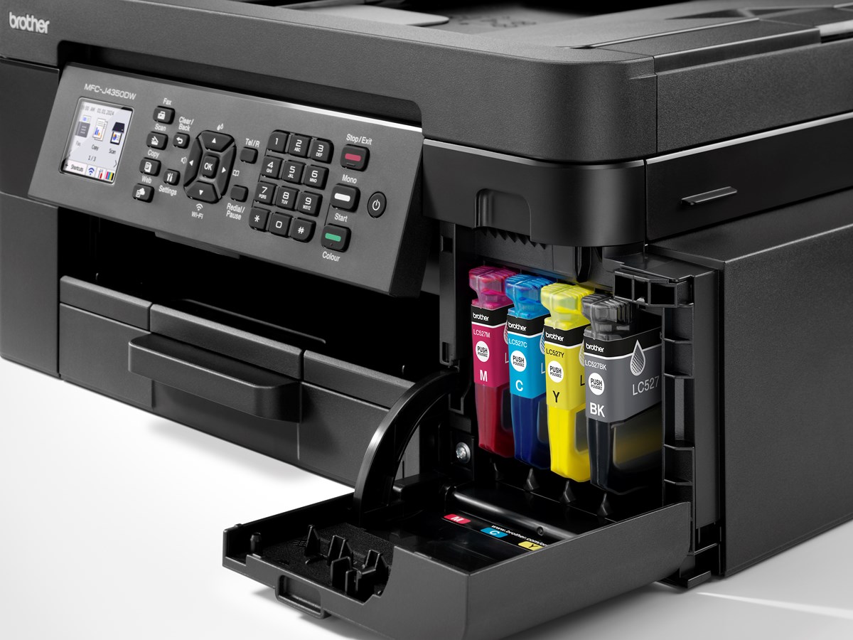 Allt-i-ett bläckstråleskrivare med trådlös anslutning. MFC-J4350DW erbjuder snabb utskrift, levande färgkvalitet och effektiv pappershantering. Perfekt för utskrift, skanning, kopiering och fax – allt i en kompakt enhet.