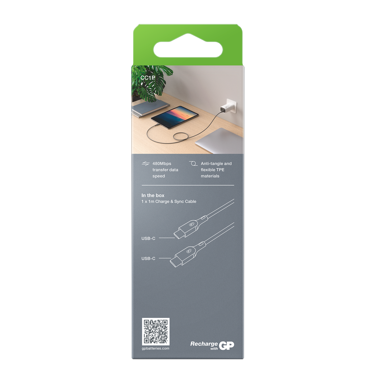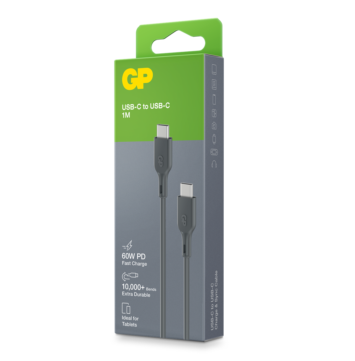 Charge & Sync-kabeln från GP är den perfekta kabeln för daglig användning. Kabeln är tillverkad av böjligt material som gör att den kan sträckas och böjas över 10 000 gånger utan att gå av. Den laddar en smartphone till 50 % på endast 30 minuter.* Med stöd för Quick Charge och PD-laddning med maximal uteffekt på 60 W är den perfekt för en mängd olika applikationer. Kabeln kan användas för 480 Mbps höghastighetsöverföring av alla filtyper så att data kan överföras blixtsnabbt.
