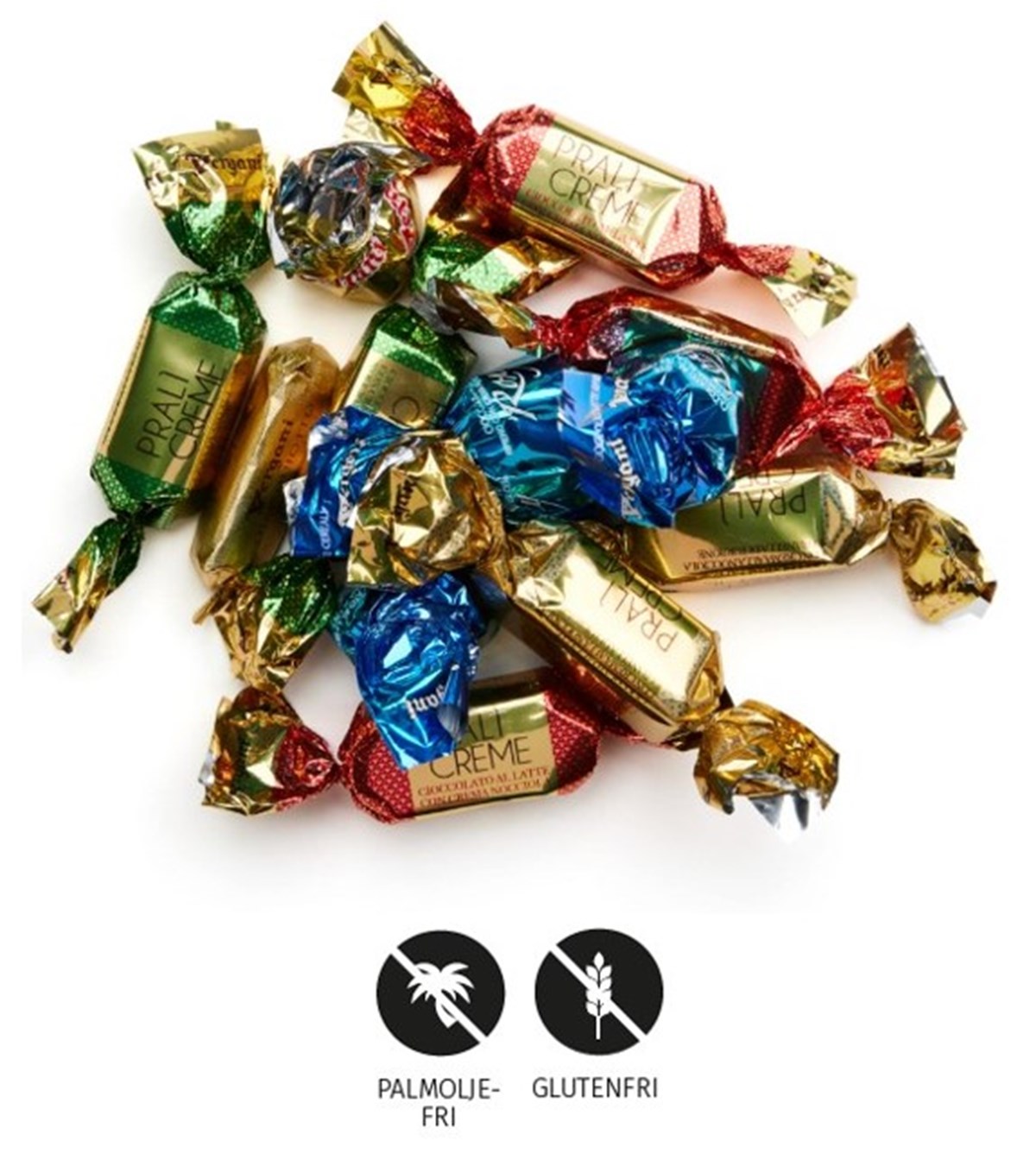 Cellofanpåse av återvunnen plast med ryttare i FSC-certifierat papper, fylld med ljuvliga italienska nougatpraliner som sprider julkänsla. Tryck din logga eller ditt budskap på produkten.