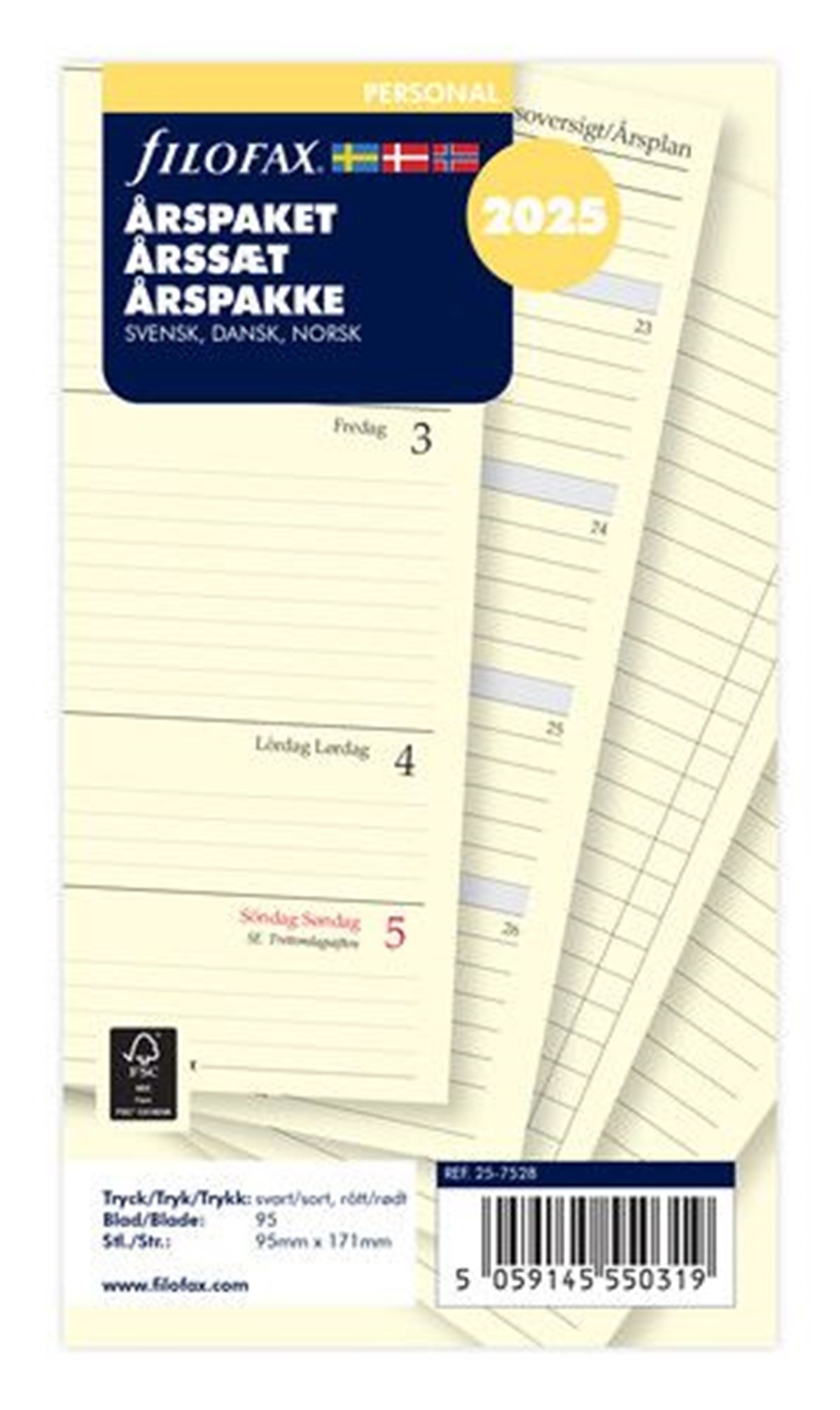 Årspaket Filofax Personal 2025 vecka/uppslag