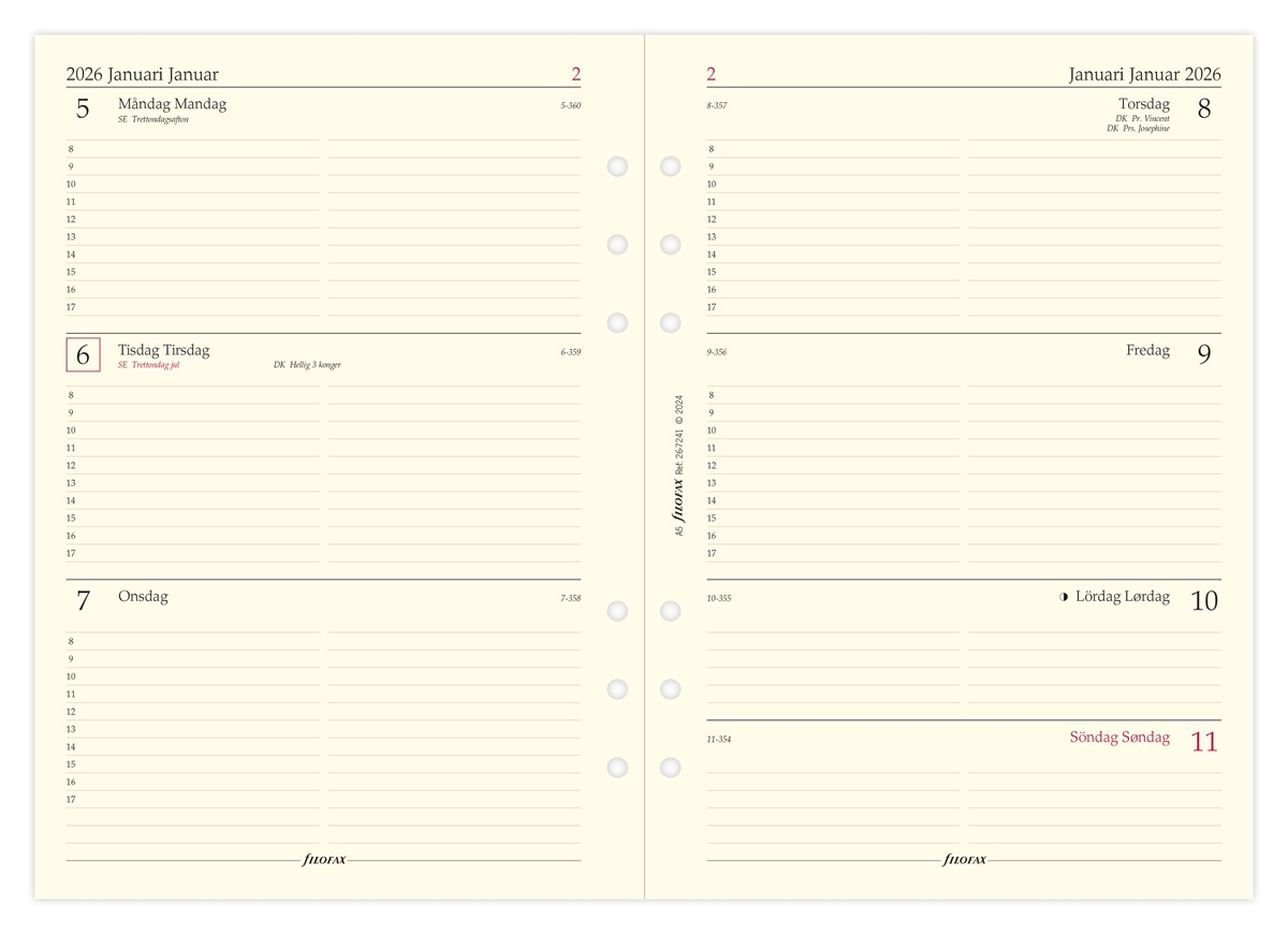 För veckoplanering med en vecka per uppslag. 3-språkig (svenska, danska och norska).