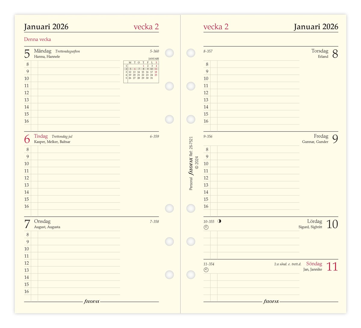 Dagbok Filofax Personal 2026 vecka/uppslag