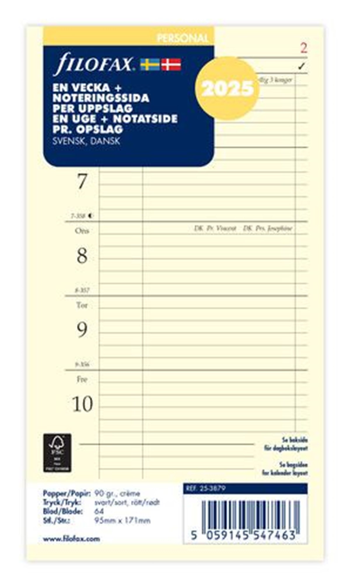 Dagbok Filofax Pocket 2025 vecka/sida + noteringssida