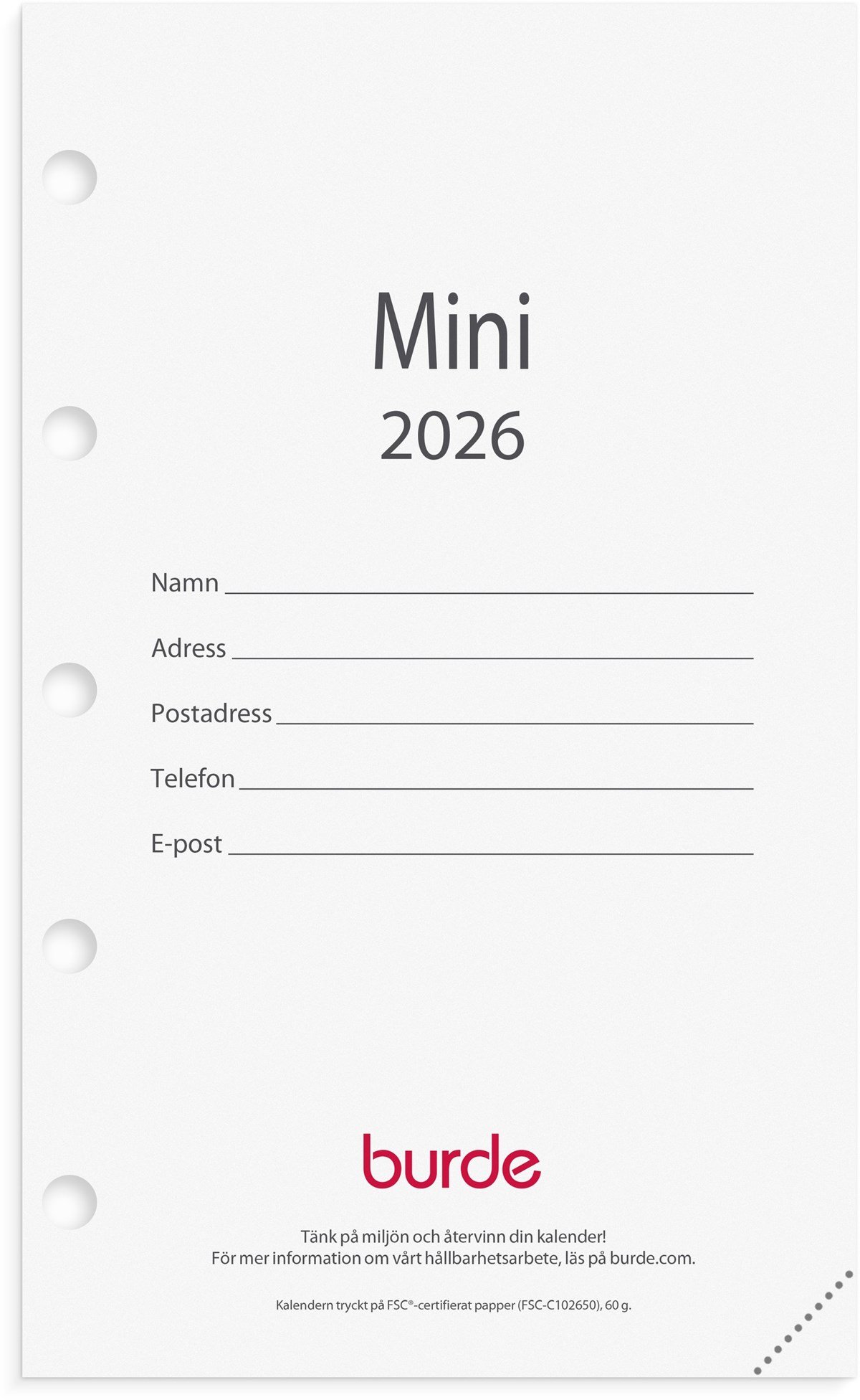 Kalender 2026 Mini kalendersats
