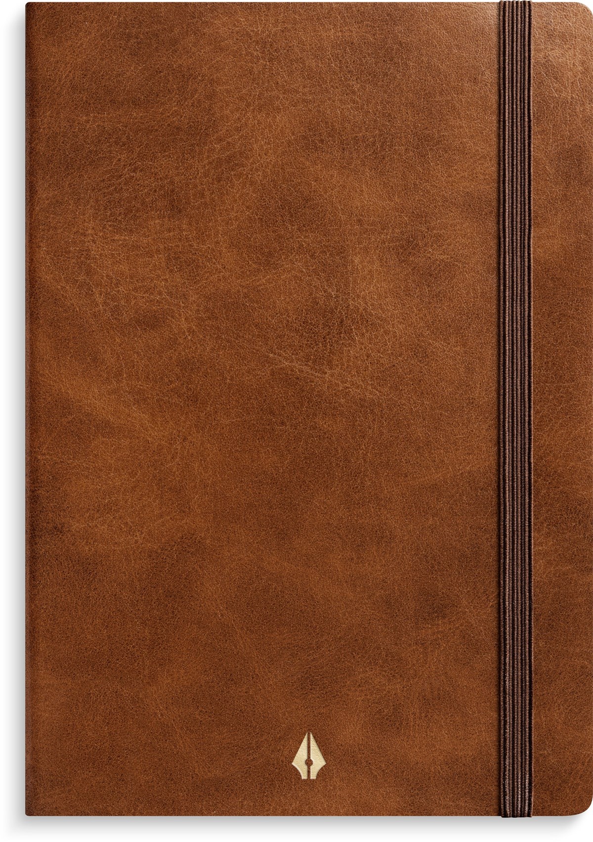 Med en enkel design för storslagna noteringar. Denna eleganta anteckningsbok ger dig den perfekta platsen att samla dina drömmar, idéer och noteringar. Anteckningsbok Notebook Deluxe har ett mjukt omslag i konstläder och ligger plant på ytan när den är uppslagen, vilket underlättar anteckningsförandet. Inlagan består av 160 sidor cremefärgat linjerat papper som bara väntar på att fyllas med notiser. Anteckningsboken har ett praktiskt gummiband som håller boken försluten när den inte används. Längst bak finns en pappersficka perfekt för att förvara extra lappar eller annat smått och gott. Anteckningsbok Notebook Deluxe kommer i ett brett sortiment av olika färger och mönster för att just du ska hitta din favorit. Omslaget i mjukt konstläder i traditionell cognac är så klassiskt det kan bli.