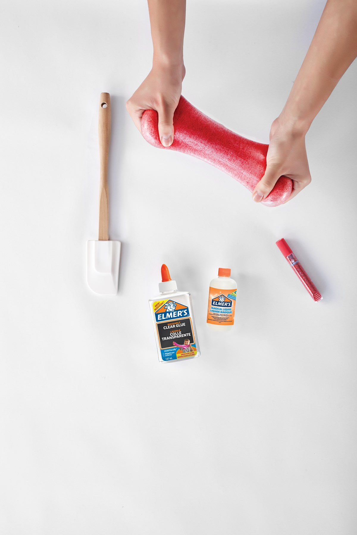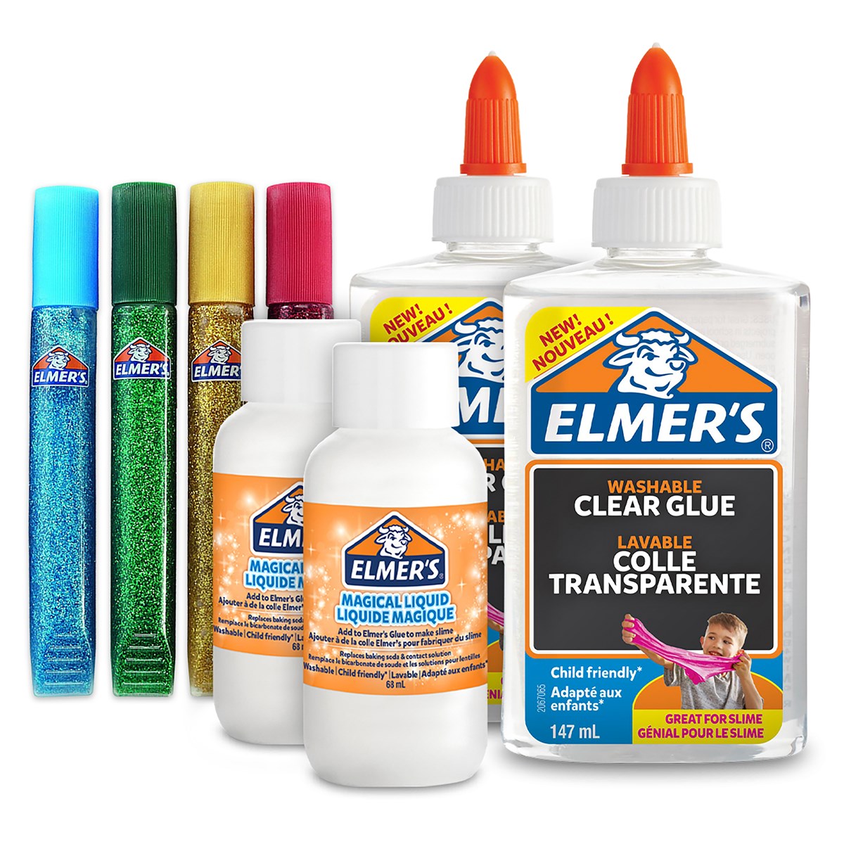 Slimkit med original limmet - Elmers! Enkelt att använda, blanda bara lim, glitterlim och sedan Magic Liquid. Innehåller 2 flaskor lim, 2 flaskor Magic Liquid samt 4 tuber glitterlim (röd, grön, gul och blå).