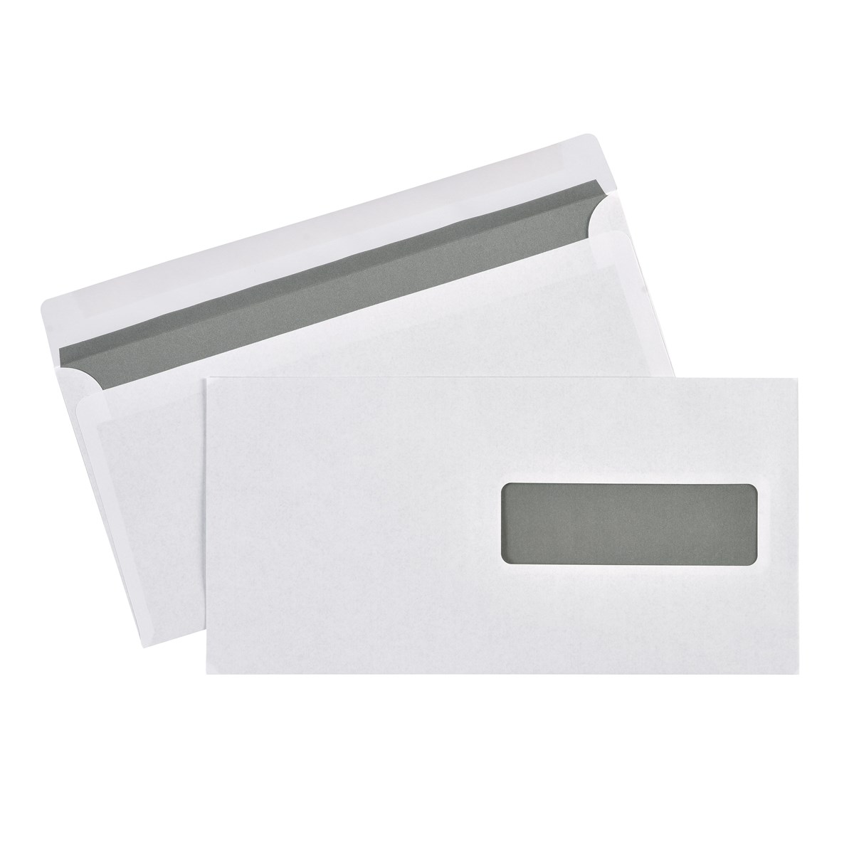 Vita konsumentpackade, fukthäftande kuvert med fönster.