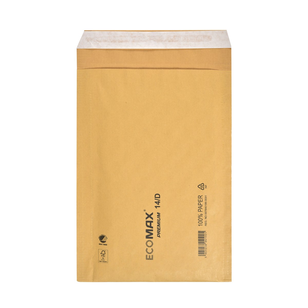 Ecomax Premium är helt plastfria vadderade kuvert för frakt och förvaring av känsliga föremål. De är väldigt lätta, vilket innebär lägre fraktkostnader. Kuverten är gjorda av 6 lager starkt och vattenavvisande obestruket papper. Insidan är fodrad med ett dubbelt skyddande lager av 100 g bubbelpapper, vilket gör kuvertet styvt, dämpar stötar och minimerar revor, veck samt hindrar att kuvertet slits sönder.