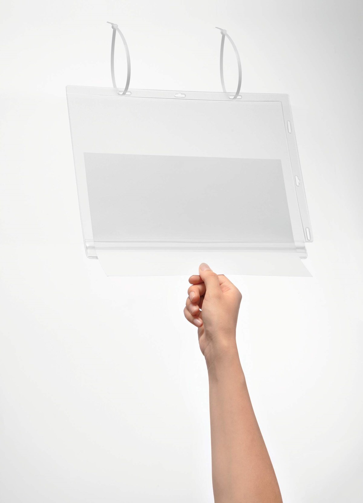 Vattentåliga plastfickor för användning utomhus – enkla att byta inlagan i Väderbeständiga och vattentäta plastfickor avsedda för information som ska visas utomhus där det finns risk för skvättande vatten t.ex. vid handelsträdgårdar, poolområden, grindar och anslagstavlor. Tål sol, hög fuktighet, dagg, regn och skvättande vatten. Plastfickorna är gjorda av transparent, UV-stabil och väderbeständig plast med antireflekterande effekt. Vattentät tryckförsegling skyddar mot väta. Testade enligt IPX5 standard. Tillverkade av återvunnen Blue Angel-certifierad plast. Kan användas i stående eller liggande format. 2 ark, som fickan rymmer, ingår. Fastsättning: de 2 medföljande buntbanden träs genom 2 av fickans hål. 5 st/förp.