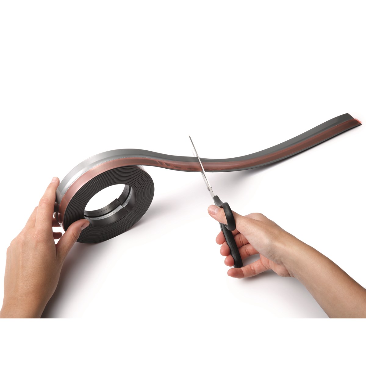 Magnetisk klämskena för snabb och enkel uppsättning av anteckningar, påminnelser, information, affischer etc. Självhäftande applicering på släta underlag som skåp, glasdörrar, skyltfönster, whiteboardtavlor. 5 m, klipps i önskad längd.