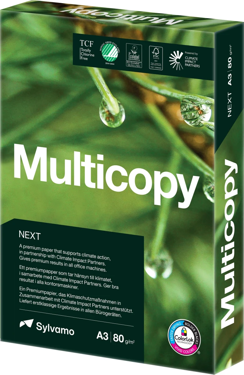 MultiCopy NEXT är ett högkvalitativt, obestruket kontorspapper som är speciellt utvecklat med hållbarhet i åtanke. Tillverkat av noggrant utvald pappersmassa från ansvarsfullt brukade skogar, erbjuder detta papper en utmärkt vithet och opacitet för skarpa utskrifter och tydlig läsbarhet på båda sidor.