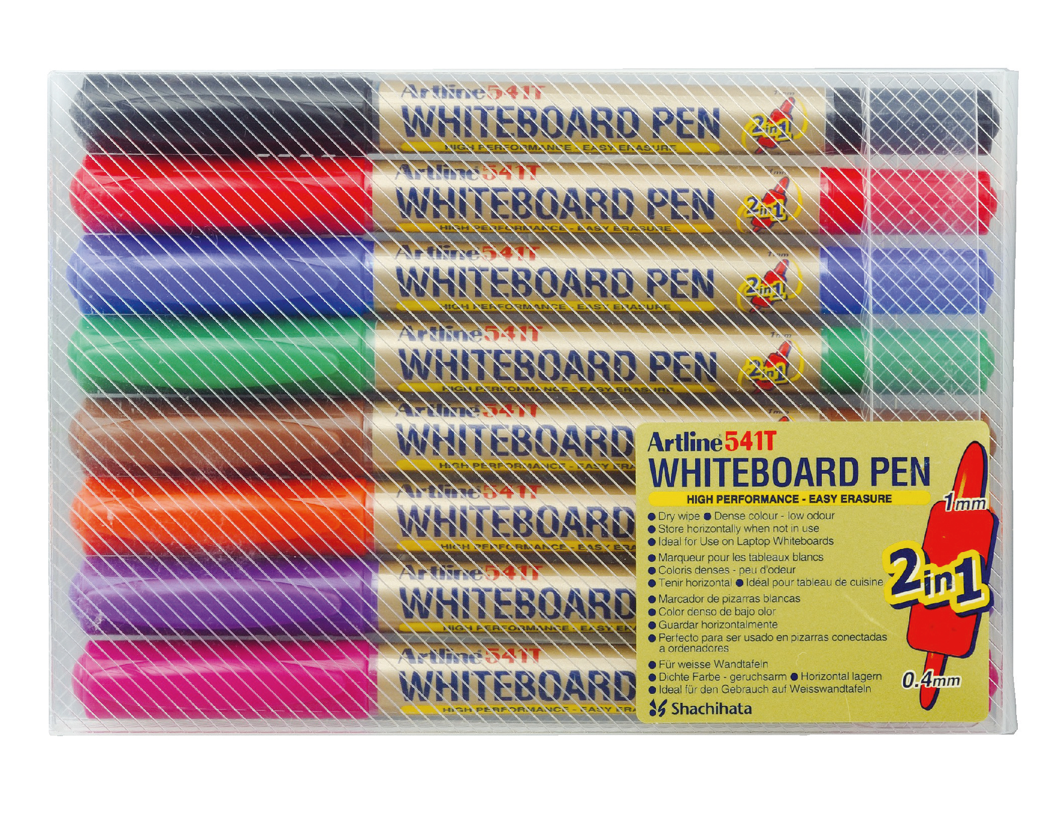Dubbelpenna med 2 spetsar: en rund och en snedskuren. Spetsbredd: 0,4 respektive 1 mm. Även lämplig för elektroniska whiteboardtavlor. Xylenfritt pigmenttusch. 12 st/förp.