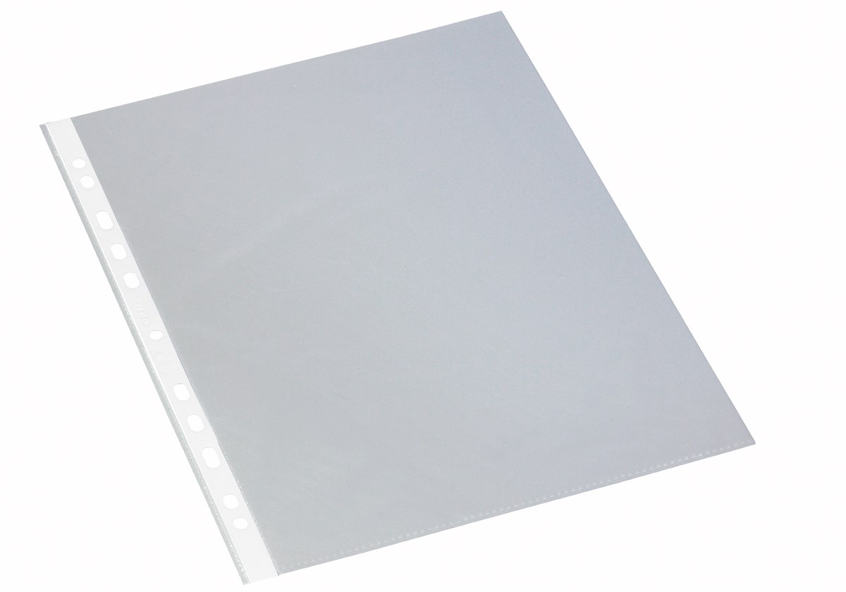 Reflexfri plastficka av polypropylenplast. Öppen i överkant. Lätt att bläddra och öppna. Kopiesäker. Förstärkt hålkant med universalhålning. A4. 0,06 mm. 100 st/förp.