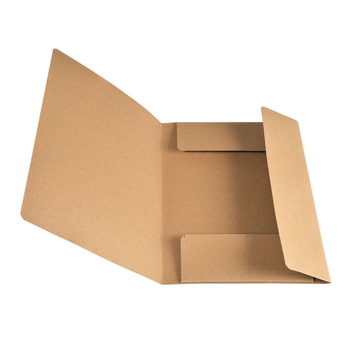 Stilren mapp i brun kartong. Tillverkad av 100 % återvunnet papper. 3 klaffar ser till att även små papper stannar kvar. Blandade färger på gummisnodden: blå, röd, gul, orange, grön och lila. 2 av varje färg i förpackning om 12 st.