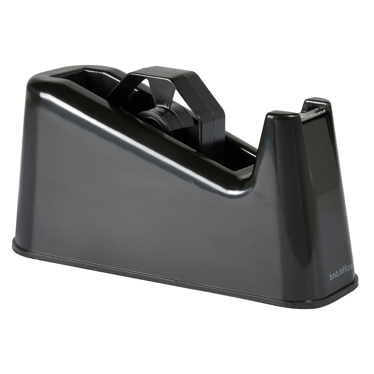 Stor tejphållare för tejprullar upp till 66 meter och 25 mm. Gedigen konstruktion i plast och metall som ger den tyngd som behövs för att hålla dispensern på plats. Med gummiplatta i botten som skonar underlaget. Vikt: 1,2 kg.