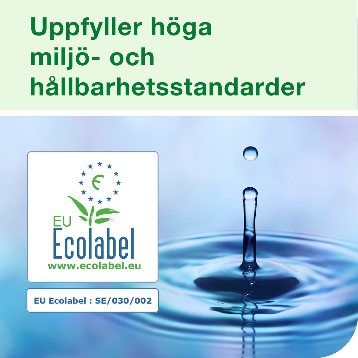 Flytande tvål för både kropp och hår. En 2-i-1-formula som innehåller vårdande och milda ingredienser. Med uppfriskande unisexdoft om ger huden och håret en mjuk och behaglig känsla. Har dokumenterats som mild för huden i hudtester. Flaskan krymper ihop efter hand som den används, vilket minskar avfallsvolymen. 1 liter. 6 st/förp.