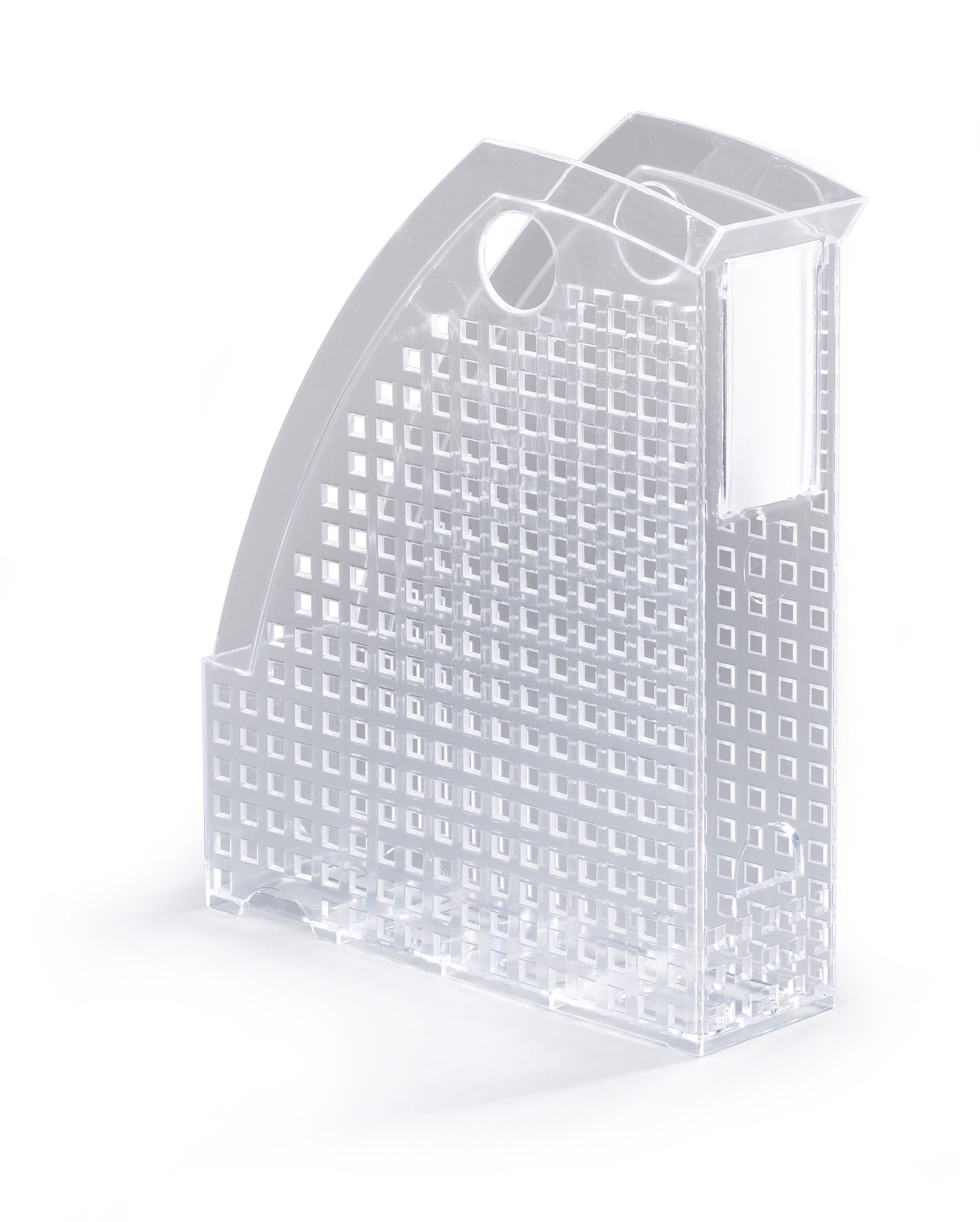 Rund papperskorg av polypropylenplast med bärhandtag. Rymmer 16 liter. Mått: Diameter 315 mm x höjd 330 mm.