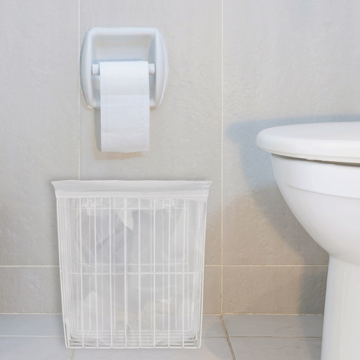 Papperskorg tillverkad av plastöverdragen vit tråd. Mått: 35x32x22 cm. 20 liter.