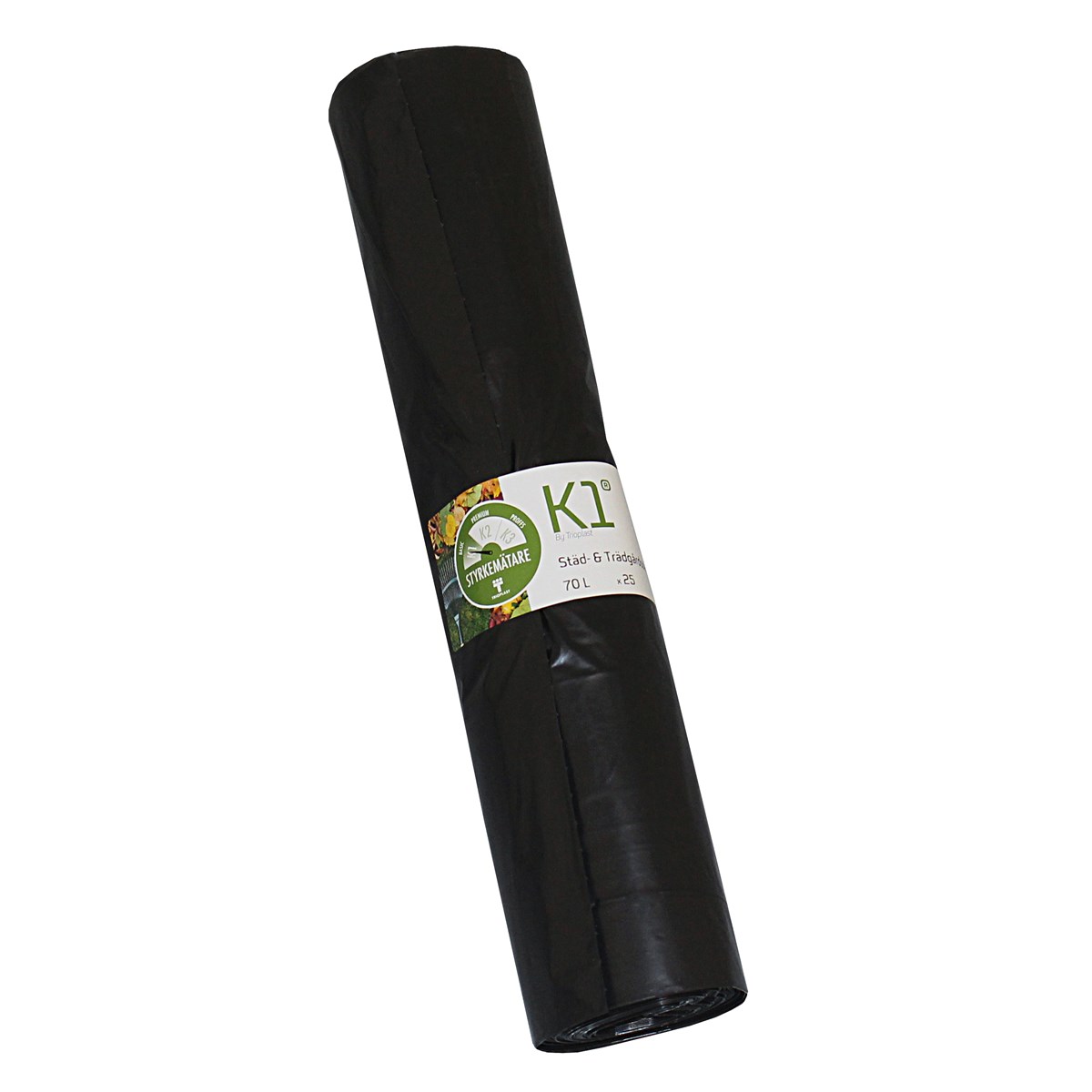 Sopsäckar K1 Basic 70L 600x900x0,030 mm svart 25/rl