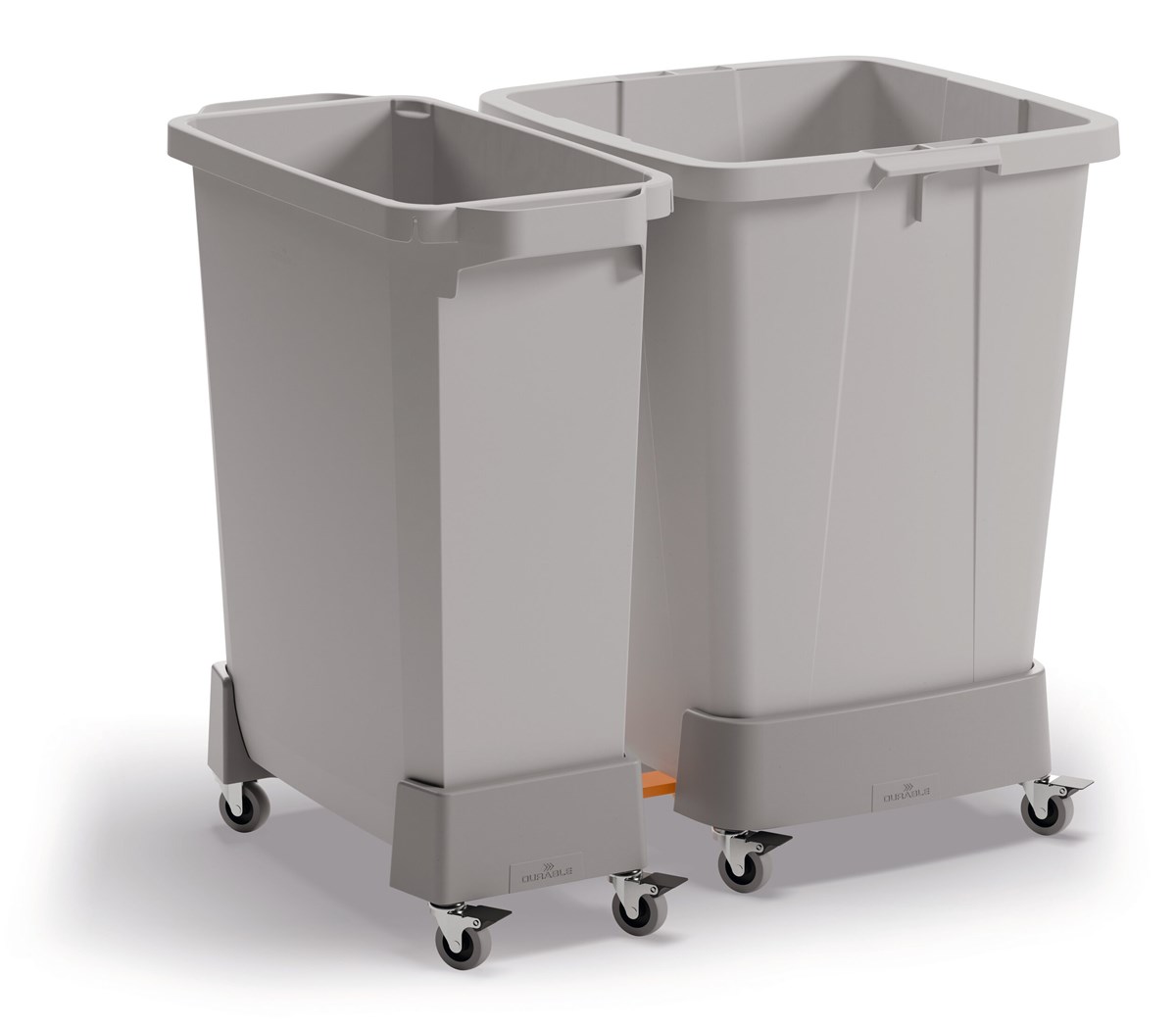 DURABIN 60 rPP gör det lätt att flytta en fylld DURABIN 60 liters soptunna på ett smidigt sätt. Det kan t.ex. vara råmaterial, material som ska återvinnas eller matavfall som ska samlas ihop på annan plats. För inomhus- och skyddad utomhusanvändning på plana ytor i lagerlokaler, produktionsområden, matsalar etc. Upp till 4 rullplattor - för både 60 och 90 liters tunnor, kan kopplas ihop med hjälp av de medföljande och integrerade kopplingarna.
