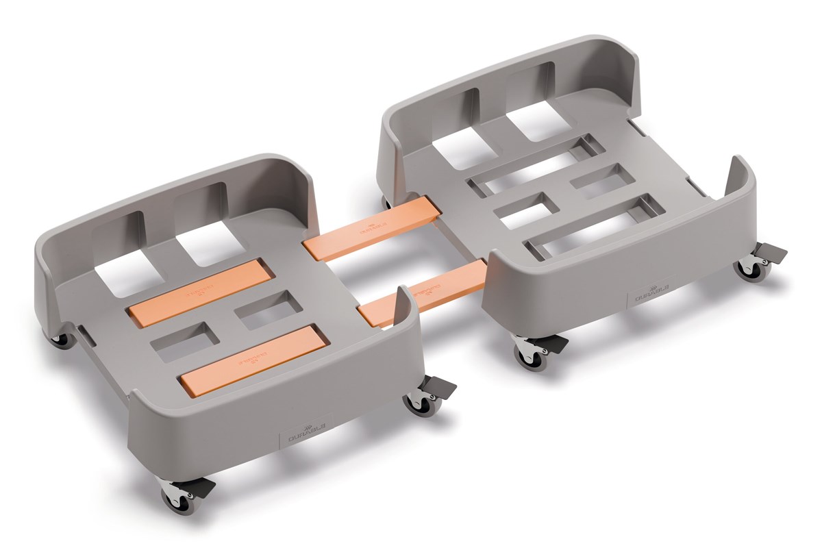 DURABIN 90 rPP gör det lätt att flytta en fylld DURABIN 90 liters soptunna på ett smidigt sätt. Det kan t.ex. vara råmaterial, material som ska återvinnas eller matavfall som ska samlas ihop på annan plats. För inomhus- och skyddad utomhusanvändning på plana ytor i lagerlokaler, produktionsområden, matsalar etc. Upp till 4 rullplattor - för både 60 och 90 liters tunnor, kan kopplas ihop med hjälp av de medföljande och integrerade kopplingarna.