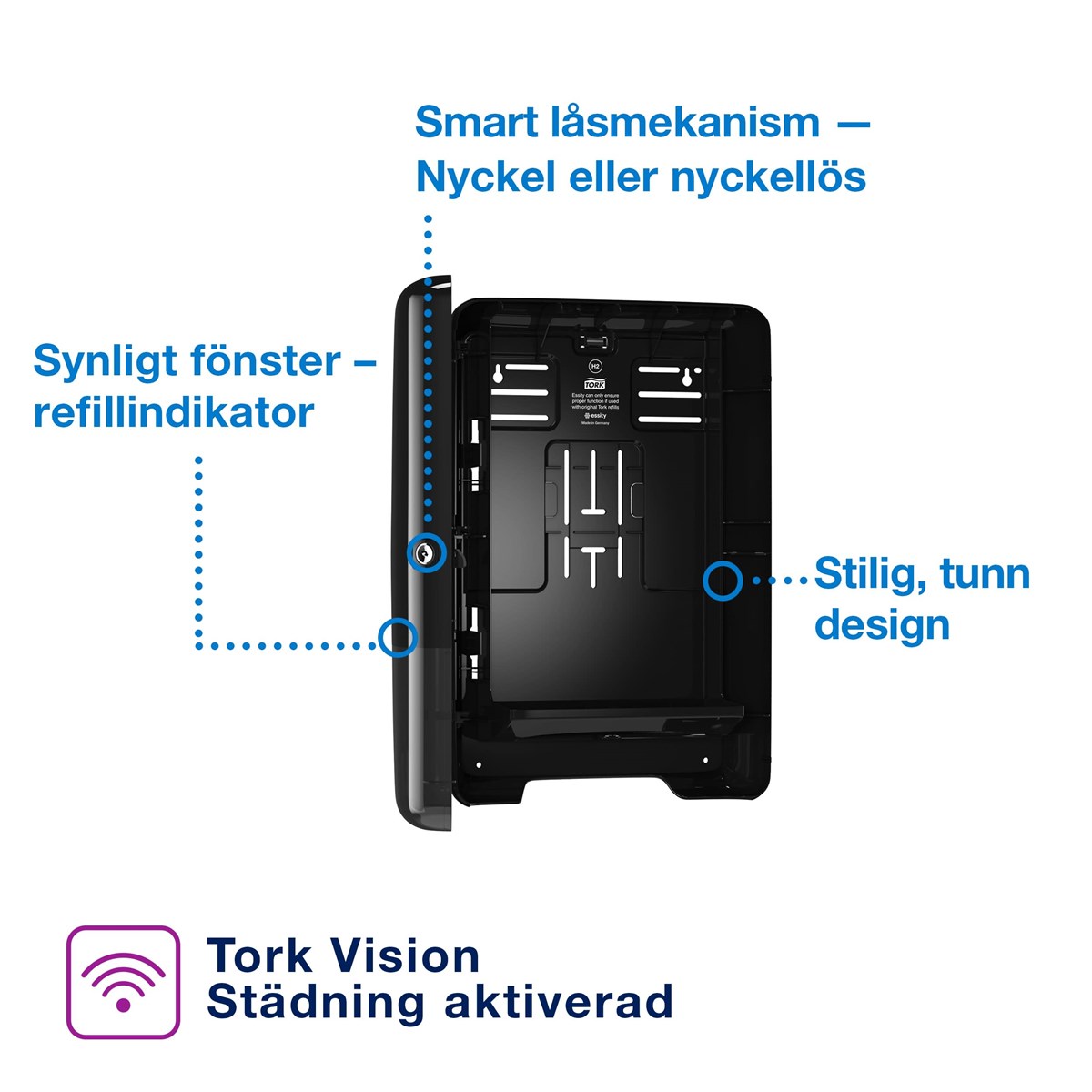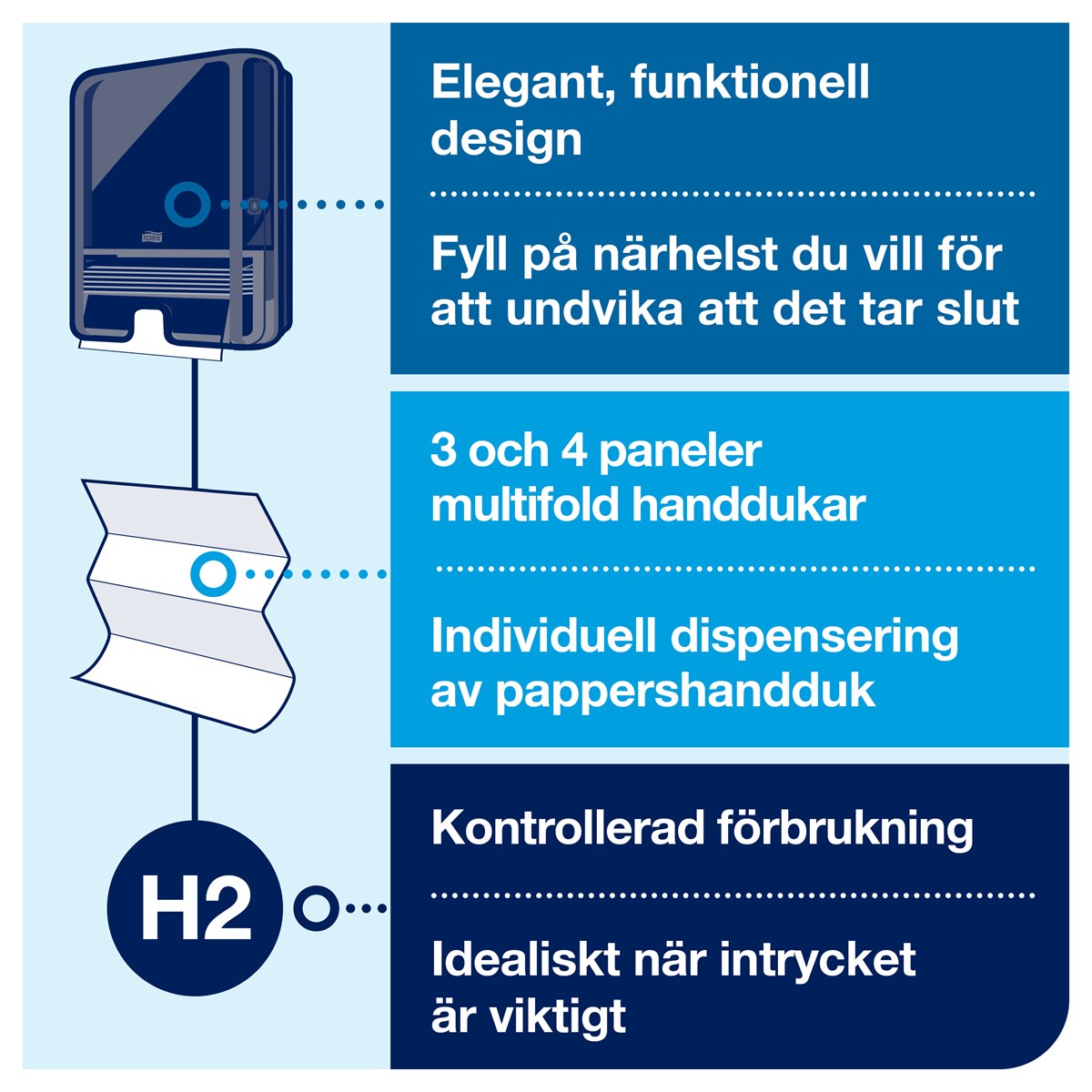 Hållare med hög kapacitet. Lämplig för miljöer med krav på både komfort och hygien. Ger en handduk i taget. Mått: (H x B x D) 44,4 x 30,2 x 10,2 cm.