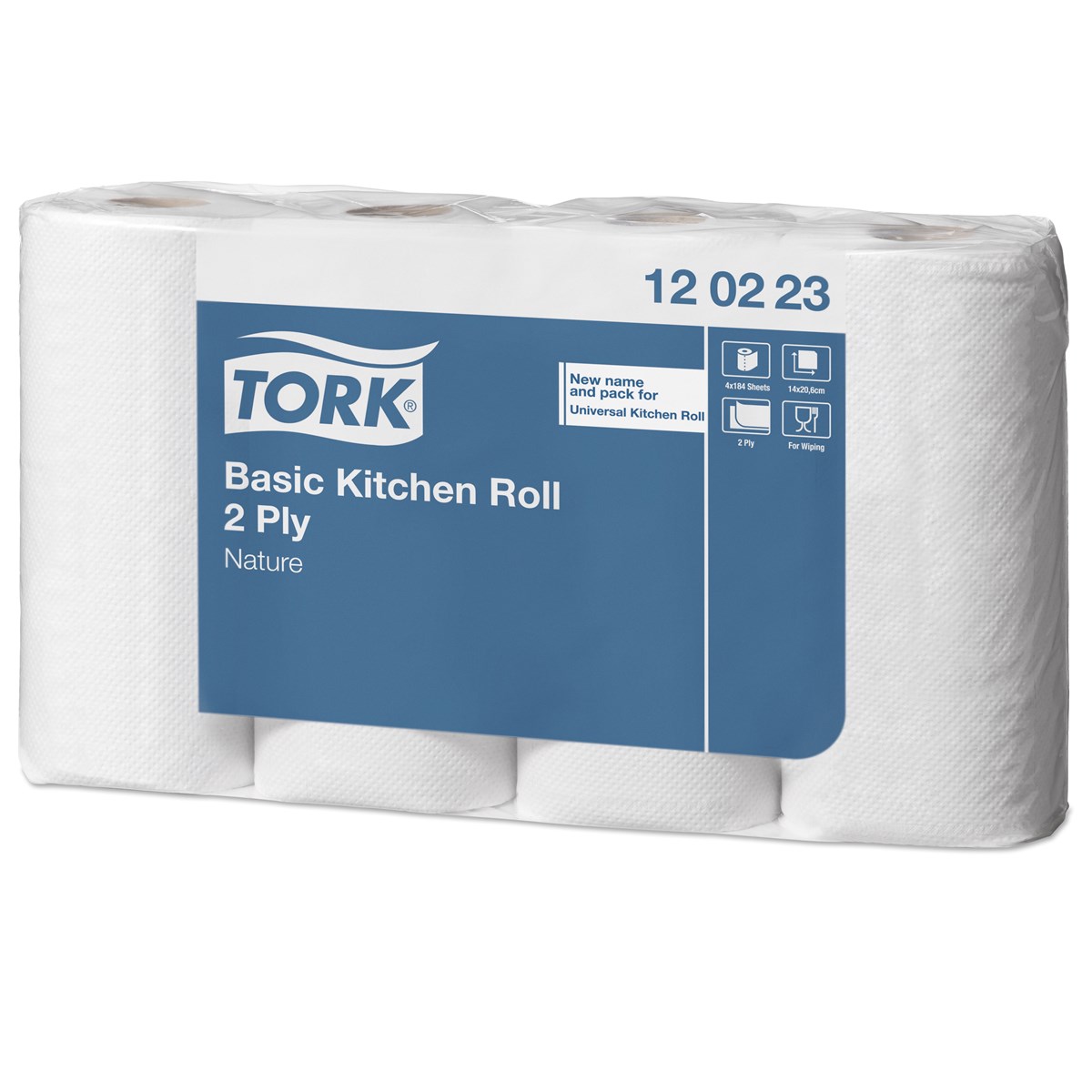 Ofärgat, 2-lags kökspapper av baskvalitet (Universal). 26 m i rullen. 32 rullar/förp.