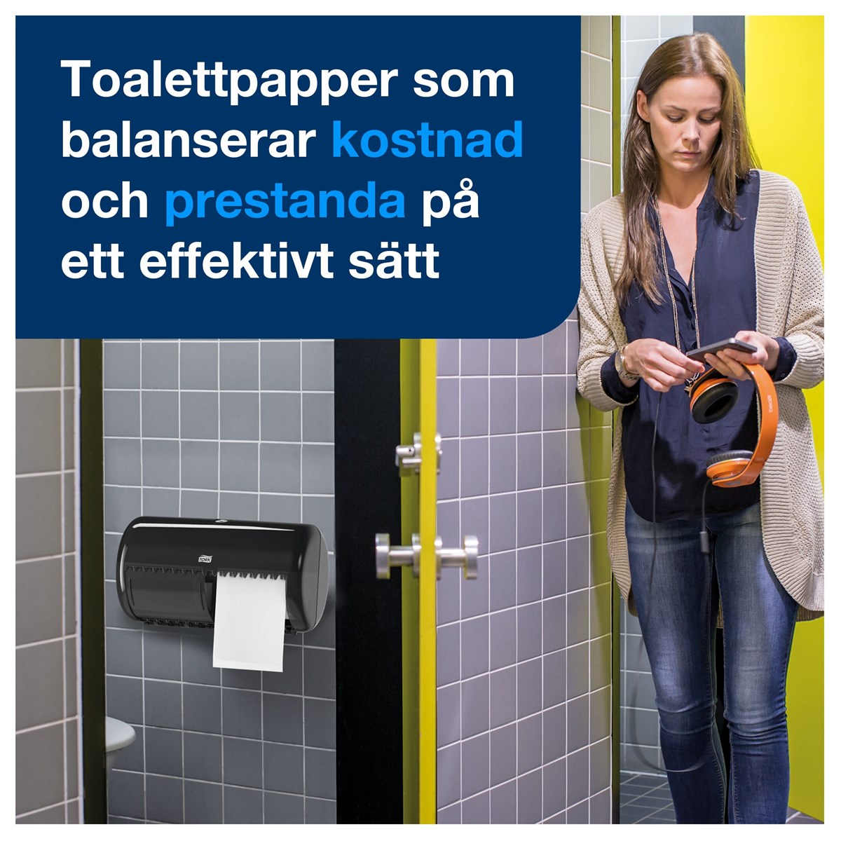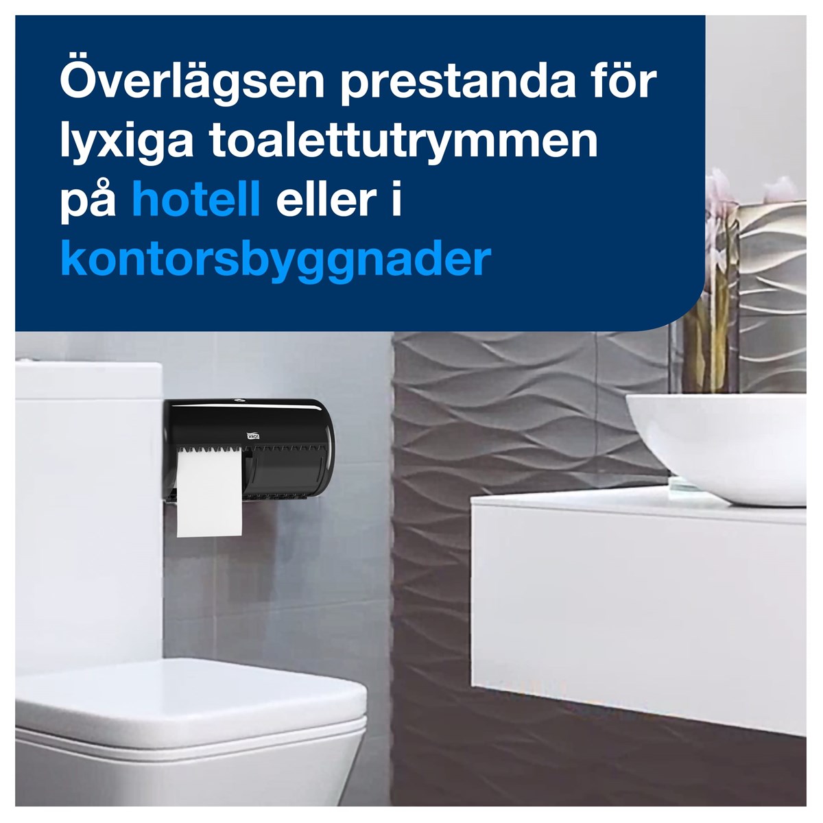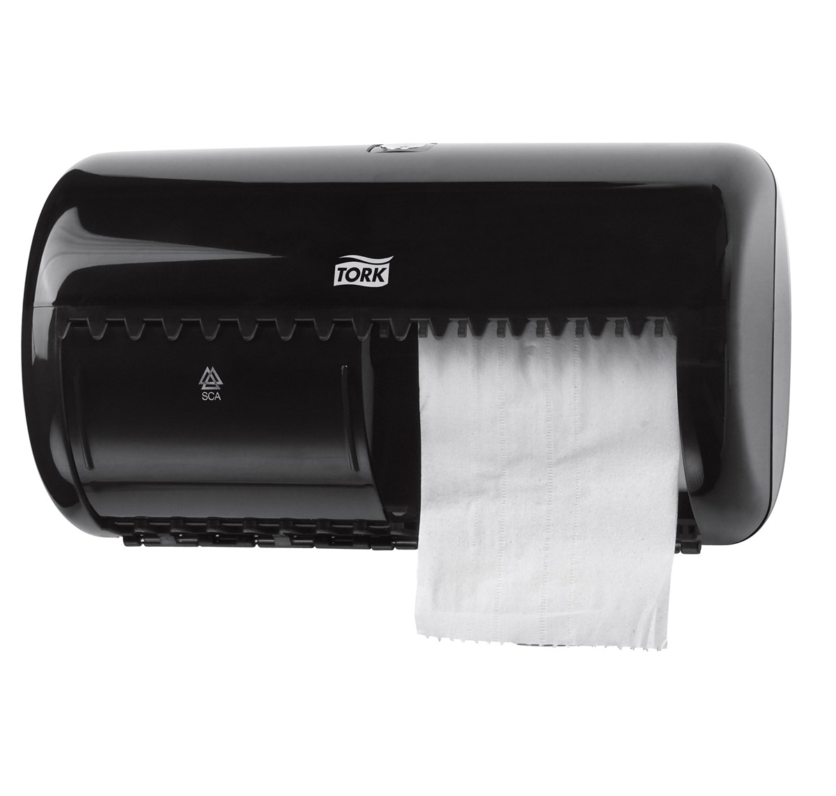 För toalettutrymmen med låg besöksfrekvens Kompakt för att passa i mindre utrymmen Rum för två rullar innebär mindre underhåll Sluten konstruktion för förbättrad hygien